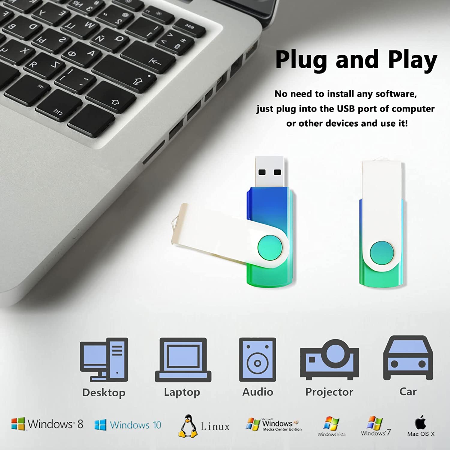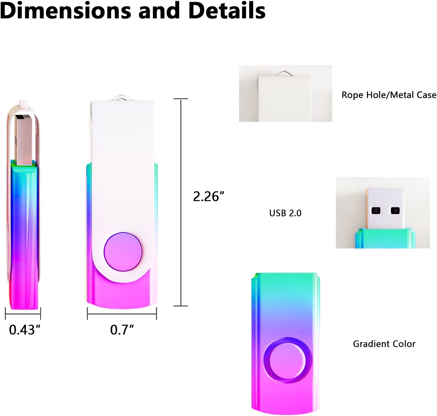 32GB 10 Pack USB Flash Drives Gradient Color USB 2.0