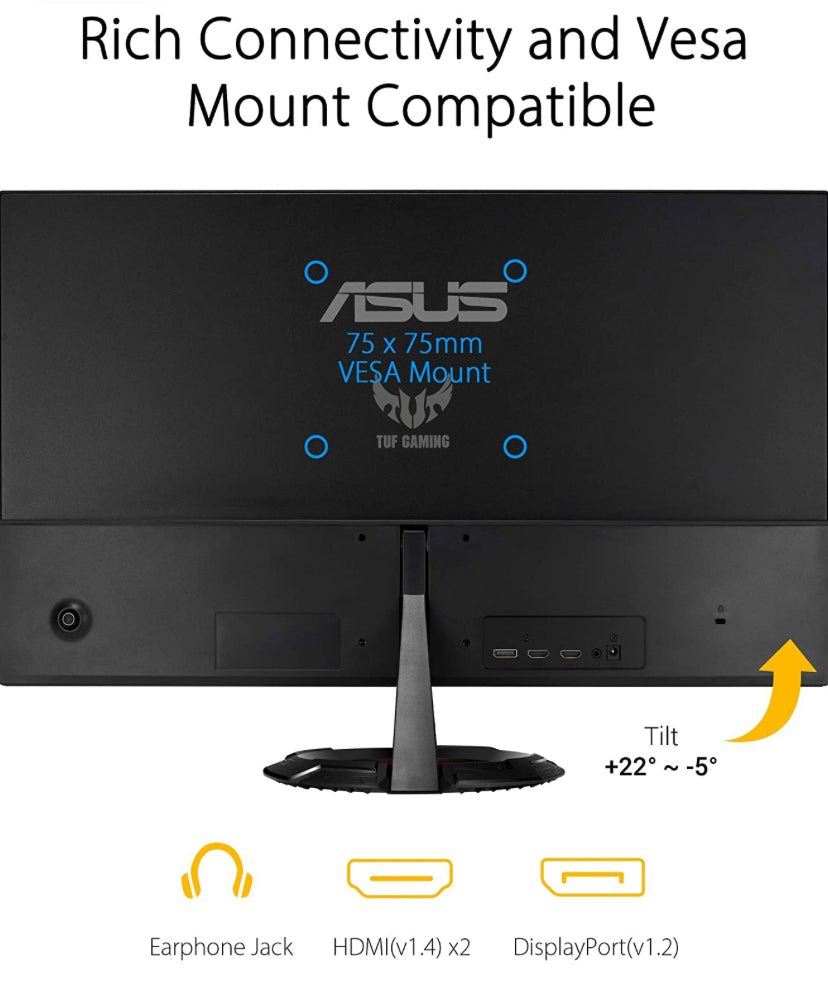 ASUS TUF Gaming 23.8” 1080P Monitor (VG249Q1R) - Full HD, IPS, 165Hz (Supports 144Hz),