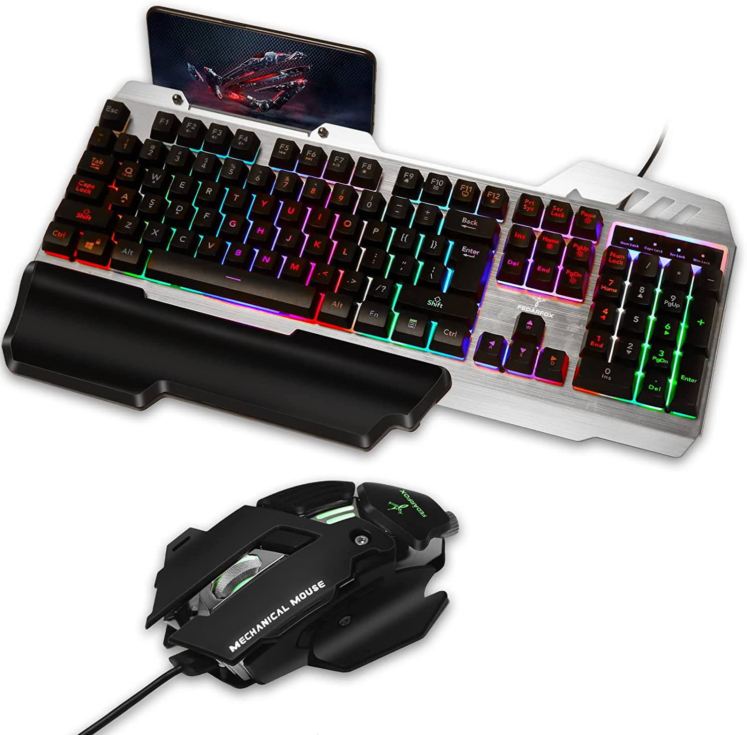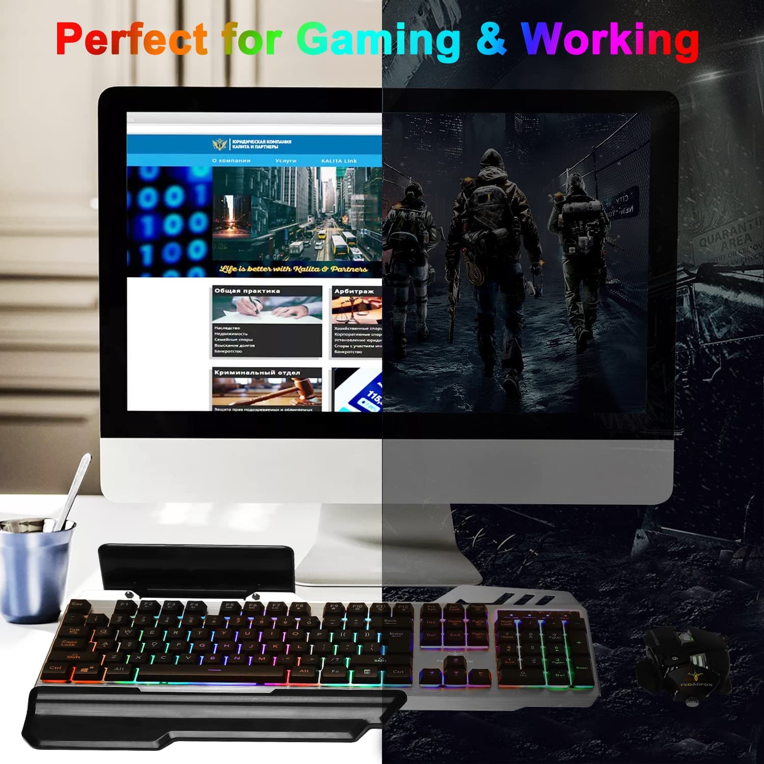 - Keyboard and Mouse Combo - The wired keyboard is made of aluminum alloy brushed panel, which is sturdy and durable. Plug & Play,the cord of the keyboard and mosue is 1.2m and long enought to connect your PC port.The gaming keyboard features a streamlined layout that is ergonomically designed for gaming or office or home use