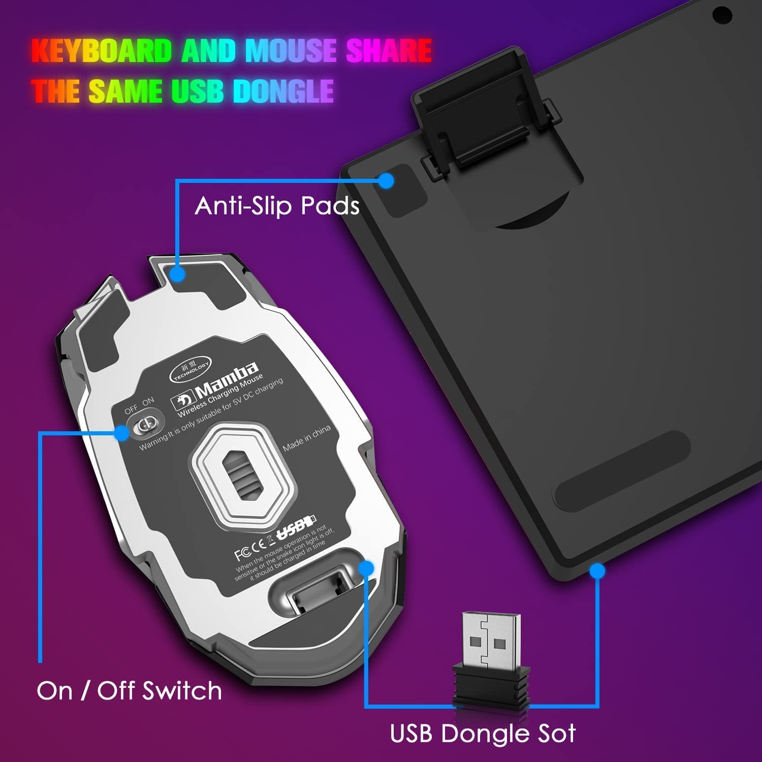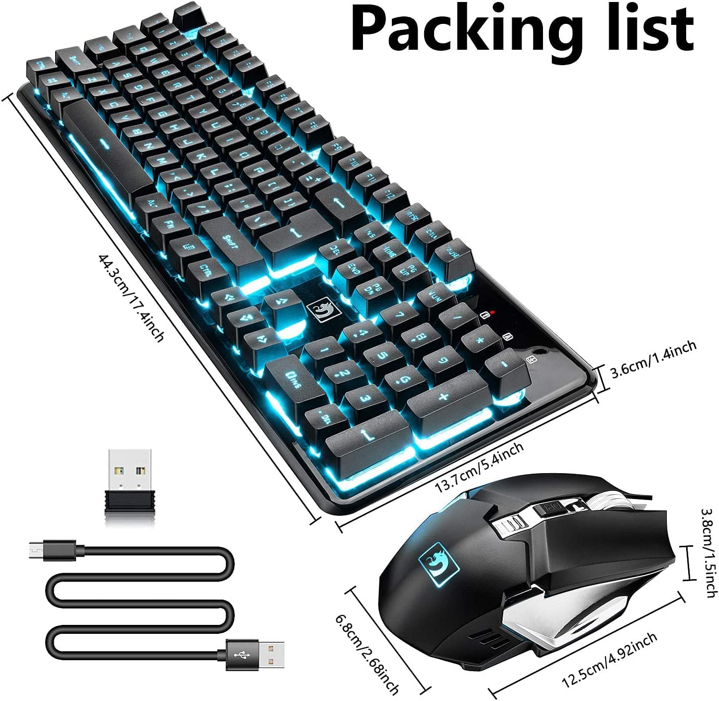 FELICON Rechargeable Wireless Gaming Keyboard and Mouse Combo & Lager Mouse Pad kit ,Mechanical Feel 104 Keys,