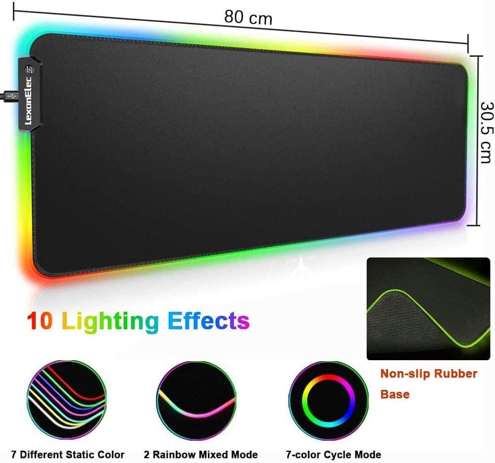 - 【10 Colors RGB Mouse Pad】A softer, micro-textured cloth surface gives more tactile feedback, allowing for higher precision in fast-paced games.Non-Slip Rubber Base: Made of natural-foam rubber for keeping the gaming mouse mat in place.