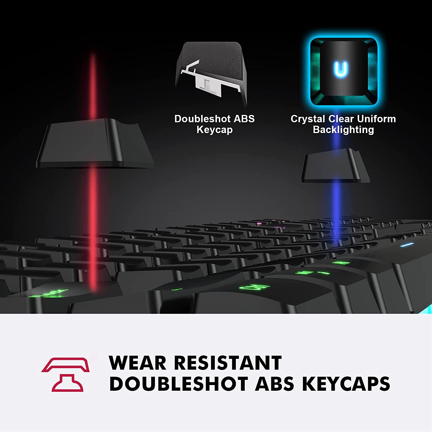 - Wear Resistant Doubleshot ABS Keycaps: The keycaps feature a special coating to protect the keyboard for many years. The ergonomic stair-up keycap design brings maximum comfort keeping your hand in a natural state to minimize hand fatigue.