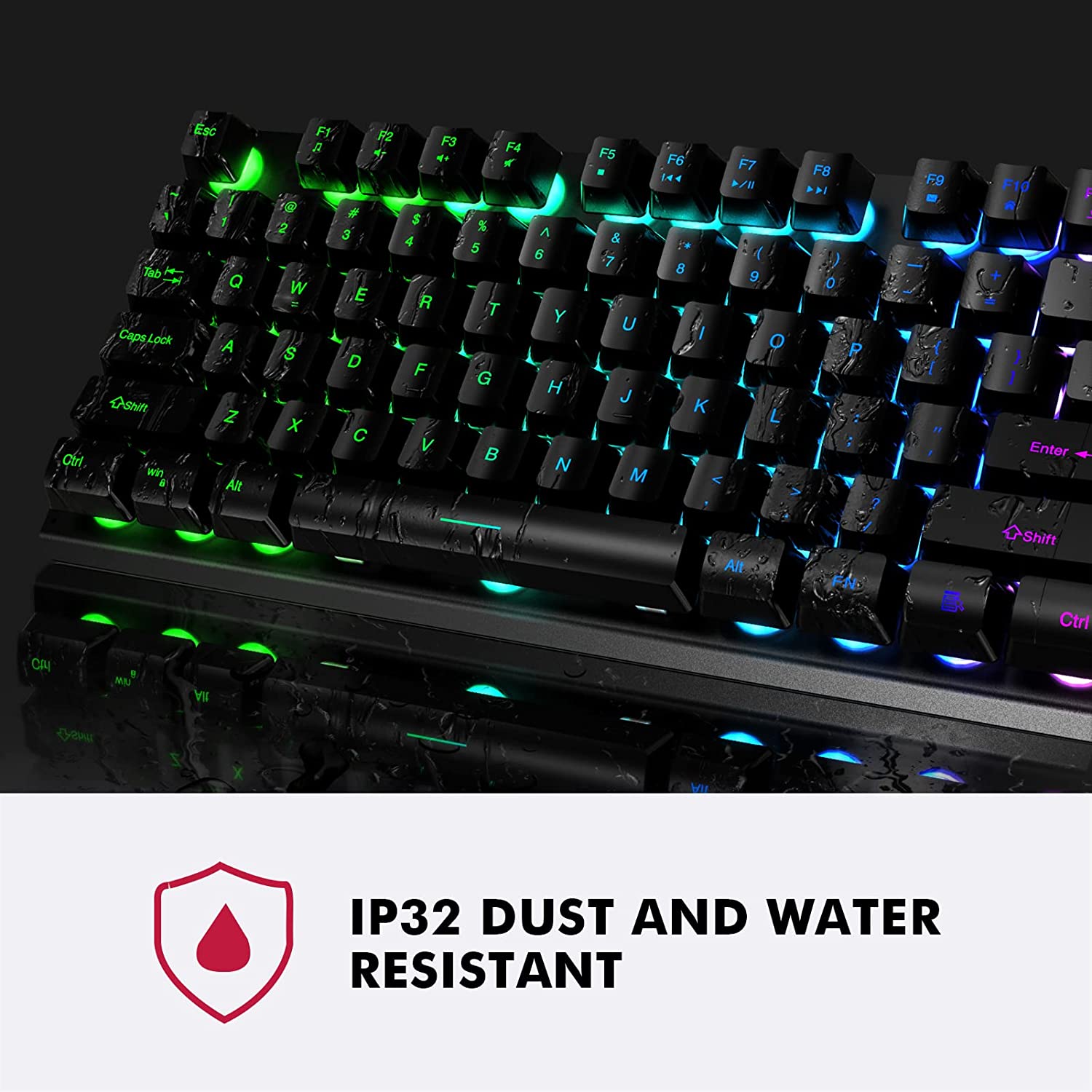- IP32 Spill Resistance: With durable construction that repels liquids and dirt for easy cleanup. Capable of withstanding accidental spills. Adjustable feet let you set your keyboard to the ideal position, so it's comfortable to use even during the longest gaming sessions.