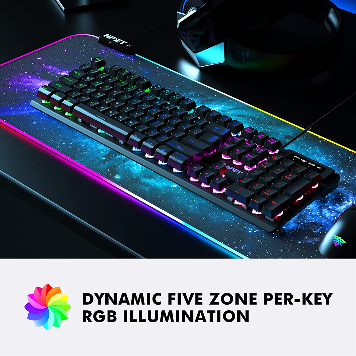 NPET K10 Gaming Keyboard USB Wired Floating Keyboard, Quiet Ergonomic Water-Resistant Mechanical Feeling Keyboard