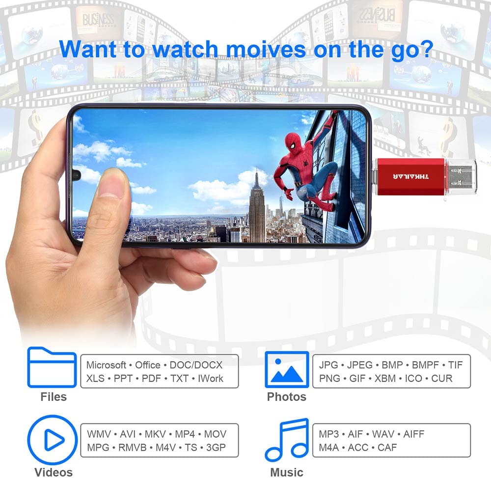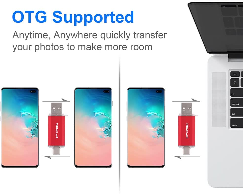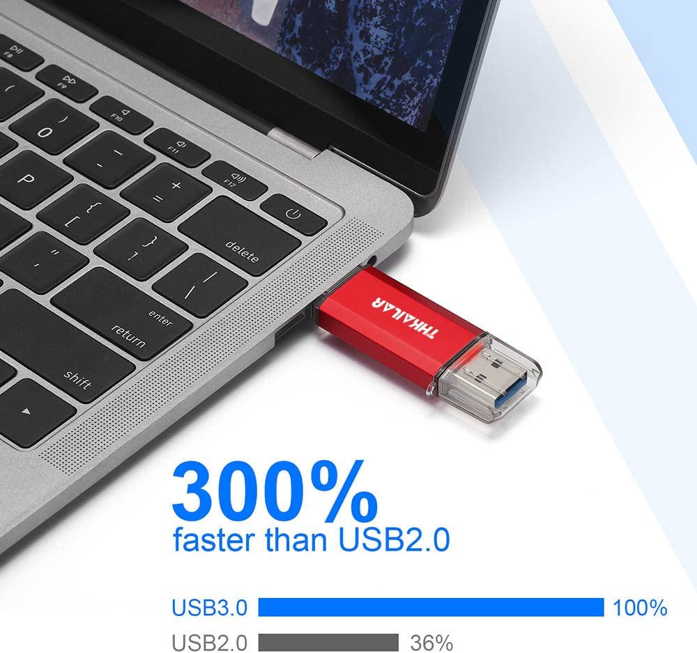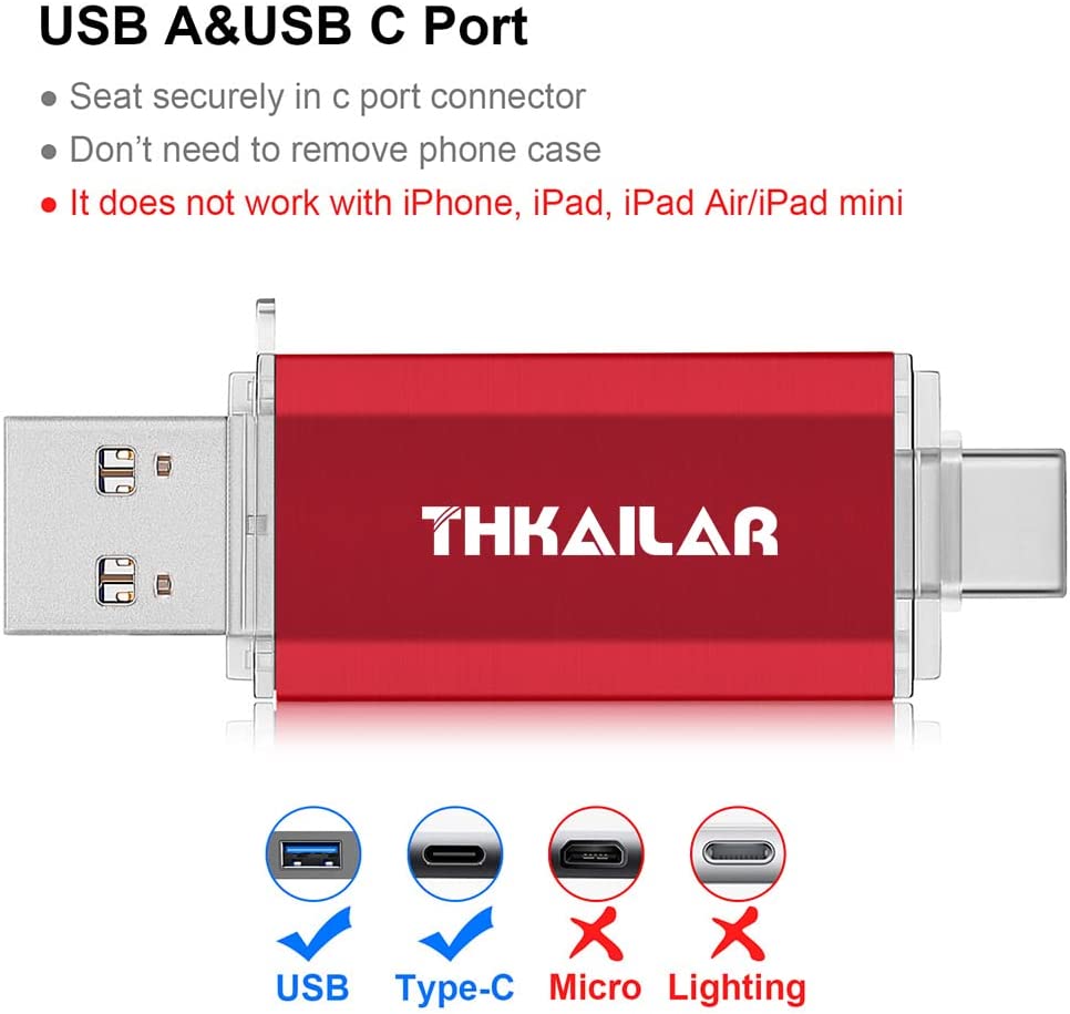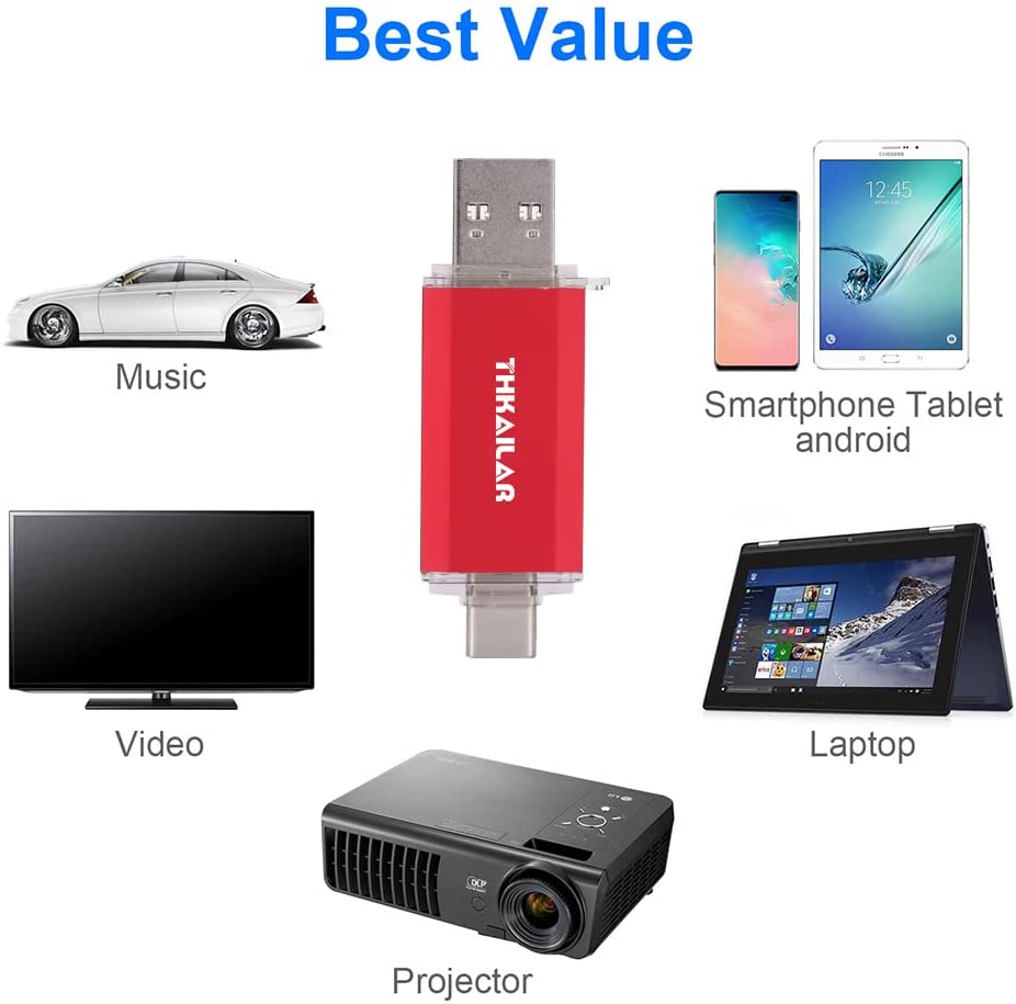 THKAILAR USB-C Flash Drive- 32 GB 64GB 128GB 256GB 512GB 1TB OTG High Speed for Store Data- USB 3.0 Red